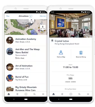 식당을 방문하기 전에 테이블을 예약하고 특별한 요청사항이 있으면 함께 이야기 하시면 됩니다. 이 모든 것을 어플로 가능하며  더욱 효과적으로 보낼 수 있습니다. 홍콩 디즈니 공식 모바일 앱을 다운로드하세요!